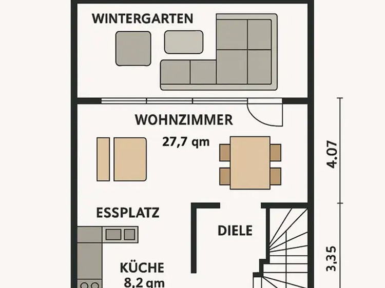 - Reihenhaus mit 2 Etagen + Keller + Spitzboden
